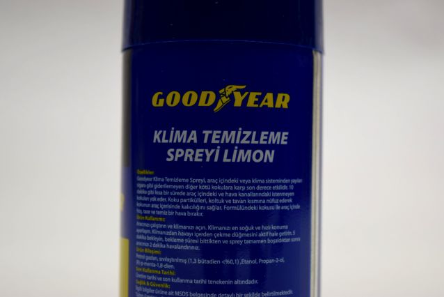 GOODYEAR KLİMA TEMİZLEME SPREY LİMON KOKULU - 150 ML - ARACINIZIN KLİMA DEZENFEKTANI GOODYEAR MARKA LİSANSLI ÜRÜN - KLİMA SİSTEMİNİ TEMİZLEMEK İÇİN ARACI KLİMANIN SON KADEMESİNDE ÇALIŞIR HALDE İKEN SPREYİ AKTİF HALE GETİRİN ARACIN KAPILARINI KAPATIP TÜPÜN BİTMESİNİ BEKLEYİN !!!