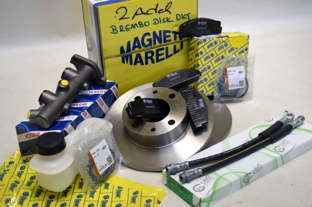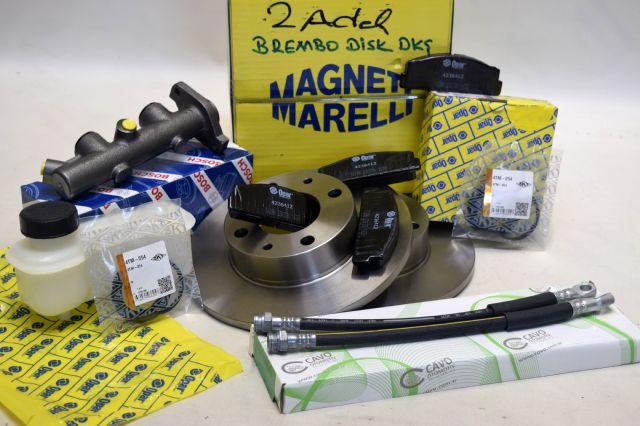 LÜTFEN AÇIKLAMALARI OKUYUN !!! : MURAT 131 DOĞAN KARTAL VE ŞAHİN BREMBO MARKA FREN DİSKİ - OPAR MARKA ÖN FREN BALATASI - CAVO MARKA ÖN FREN HORTUMU - SKT MARKA ÖN FREN KALİPER TAMİR TAKIMI - BOSCH MARKA FREN ANA MERKEZİ - OPAR MARKA FREN HİDROLİK DEPOSU - SETİN İÇİNDE OLAN FREN DİSKİ SEBEBİ İLE BU SET 2000 MODEL VE SONRASI BÜYÜK DİSK ARAÇLARA UYMAZ !!! - MURAT 131 ARAÇLARDA DA BU SETİN UYMASI İÇİN FREN SİSTEMİNDE BULUNAN HORTUMLARIN İNCE DİŞLİ OLMASI GEREKİR !!!